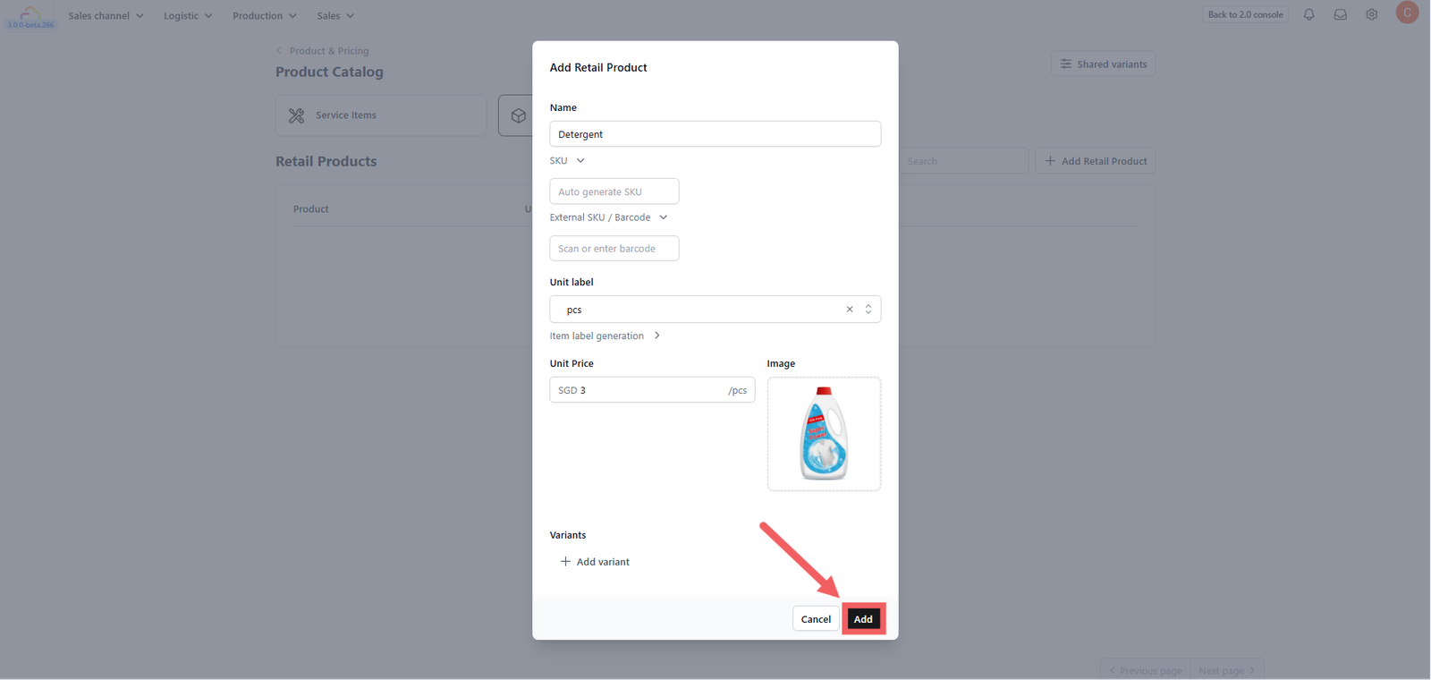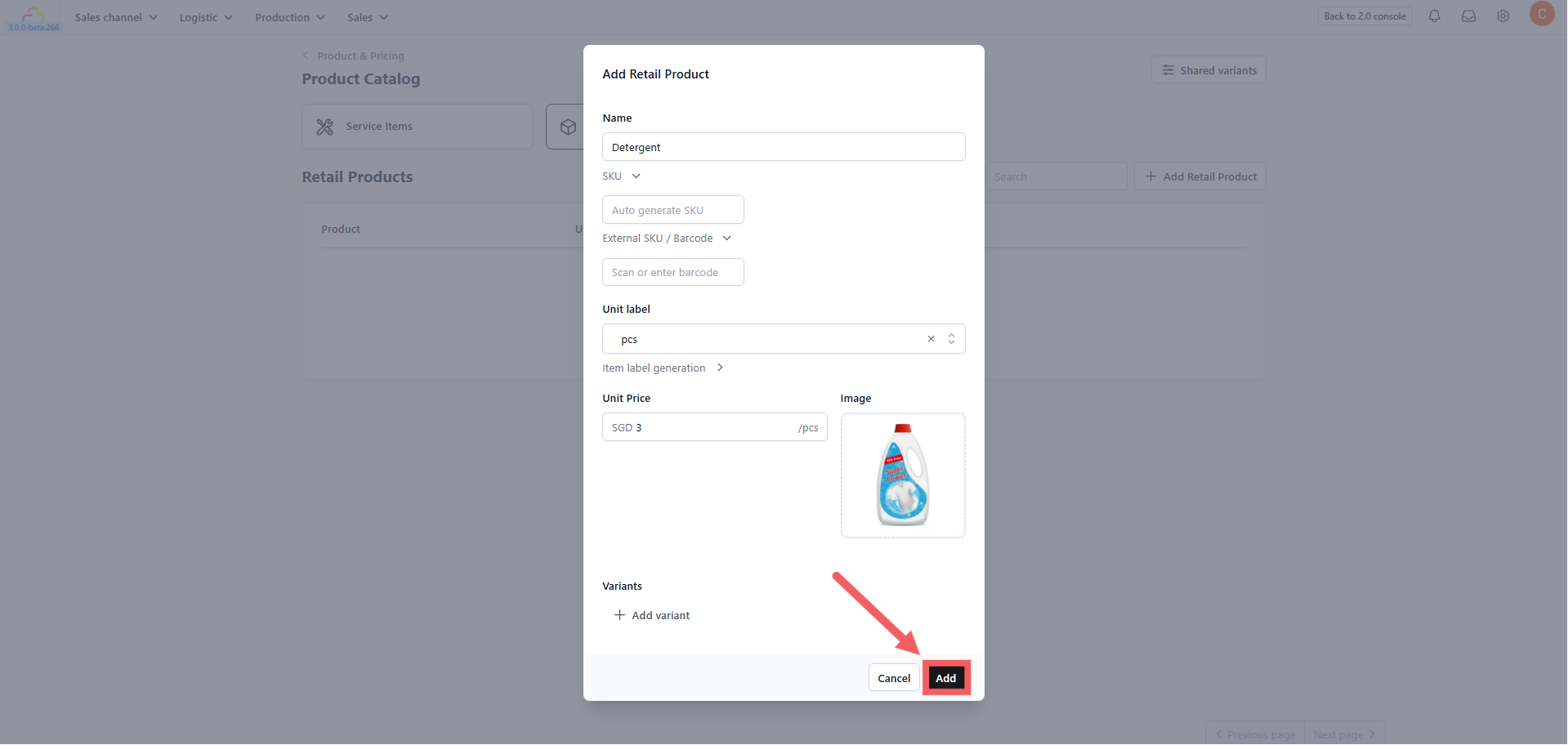 2. Click + Add Retail Product.