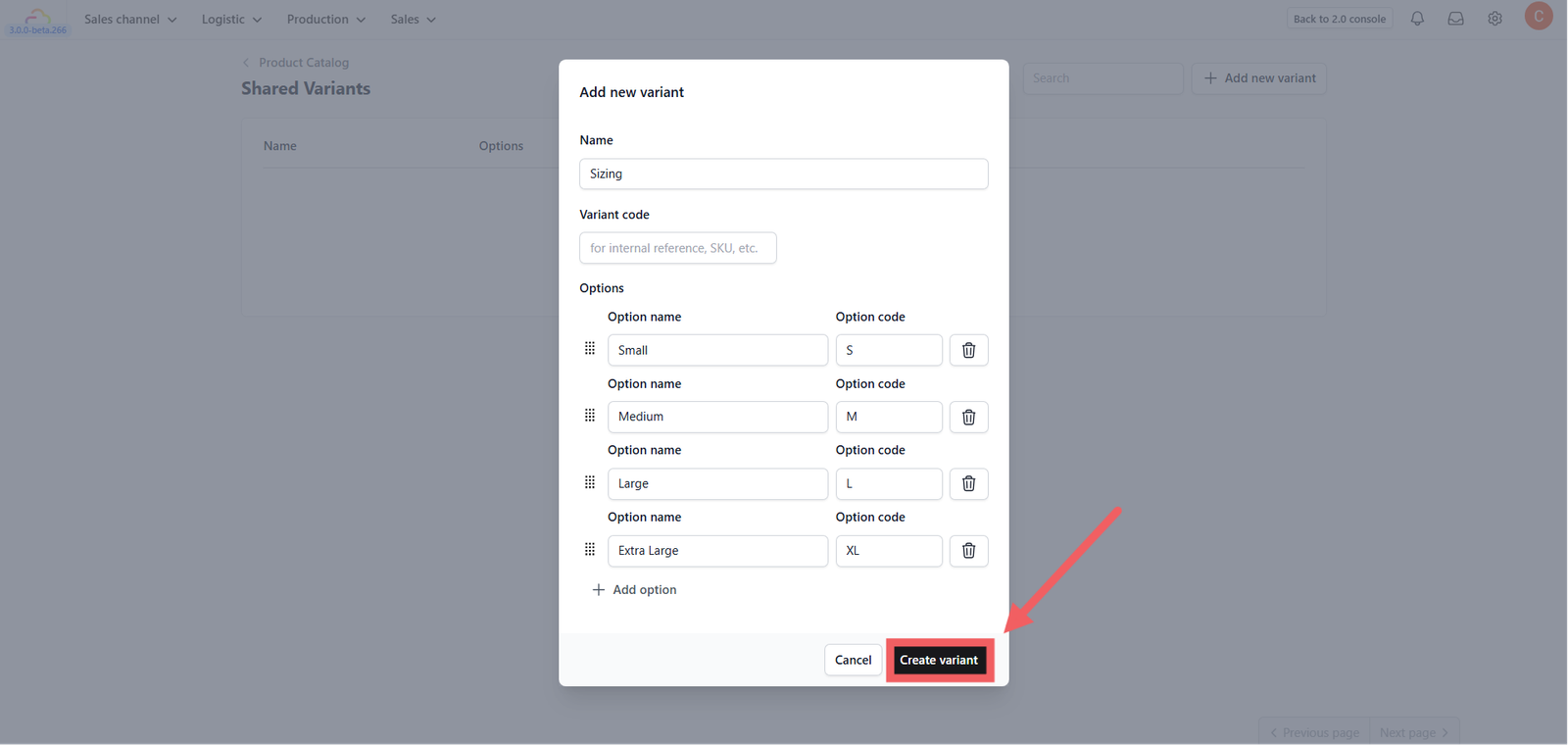 6. Click Create Variant to save.