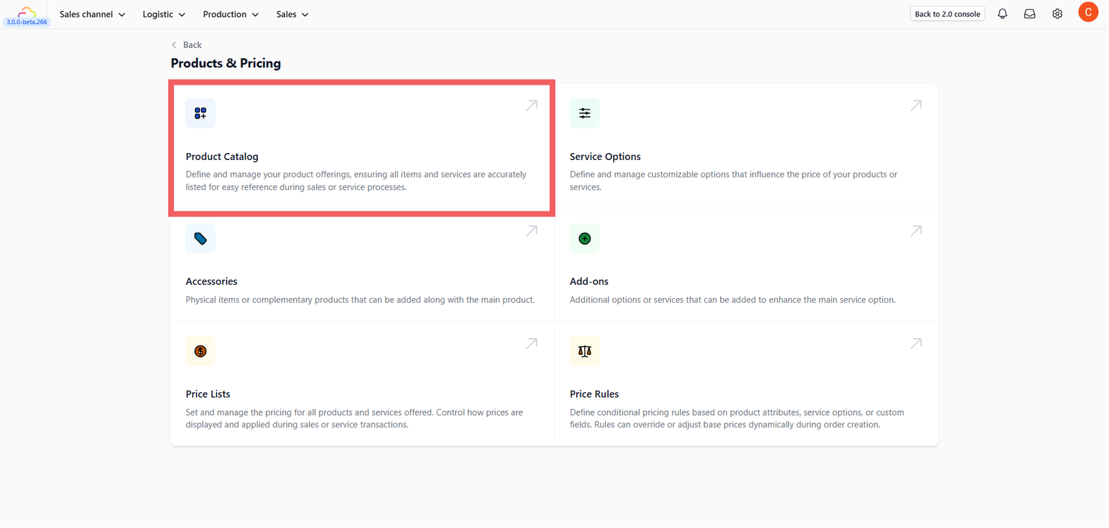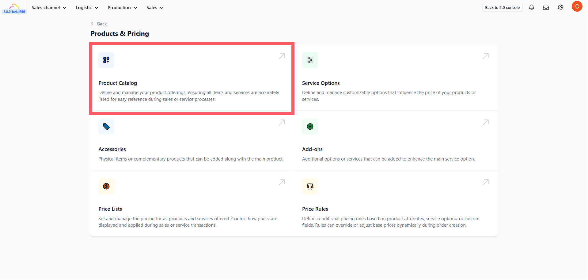 - Navigate to Products & Pricing > Product Catalog.