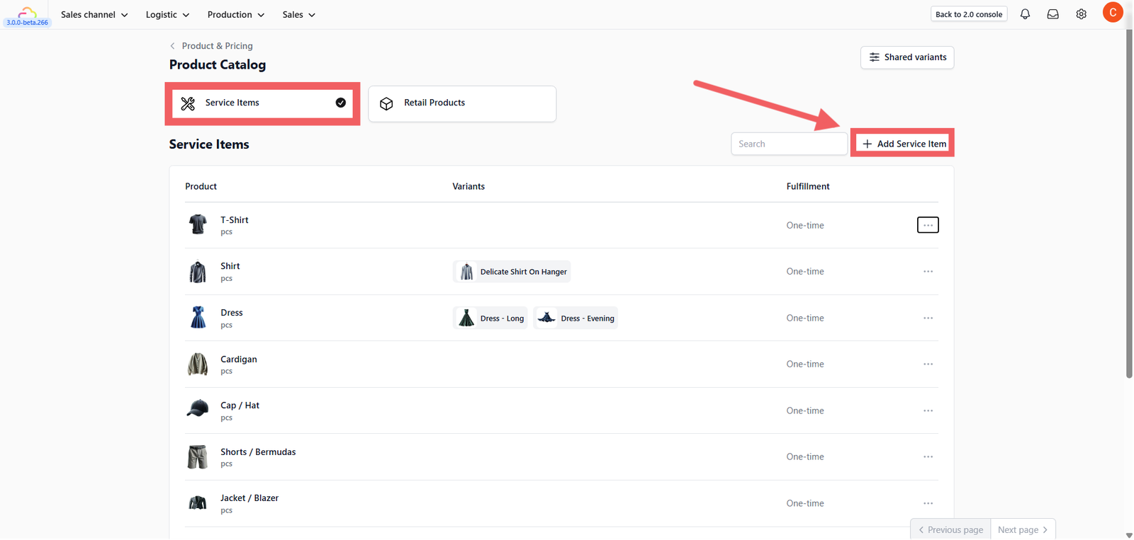 Service Items are the core tasks your team performs (e.g., Dry Cleaning, Ironing, Repair).