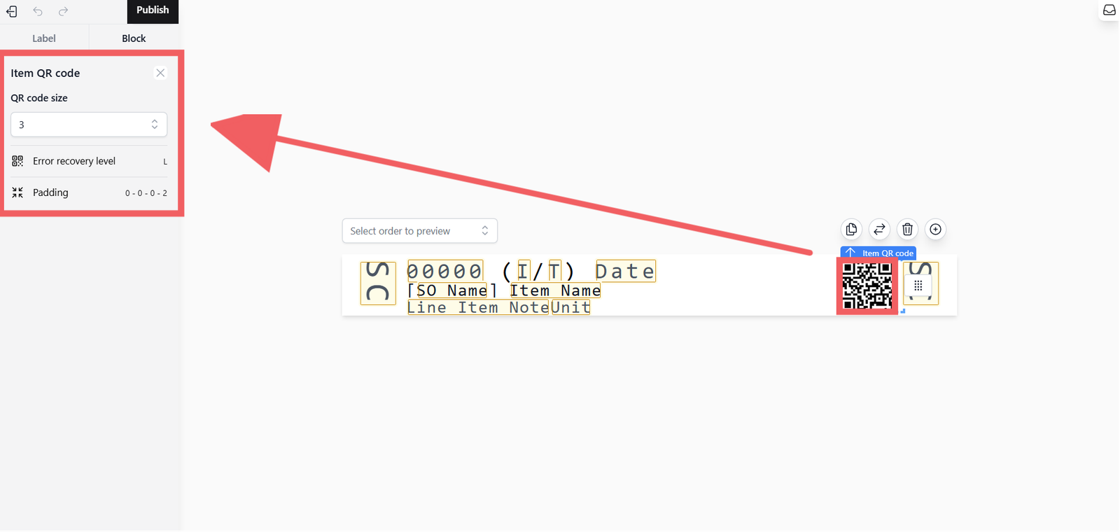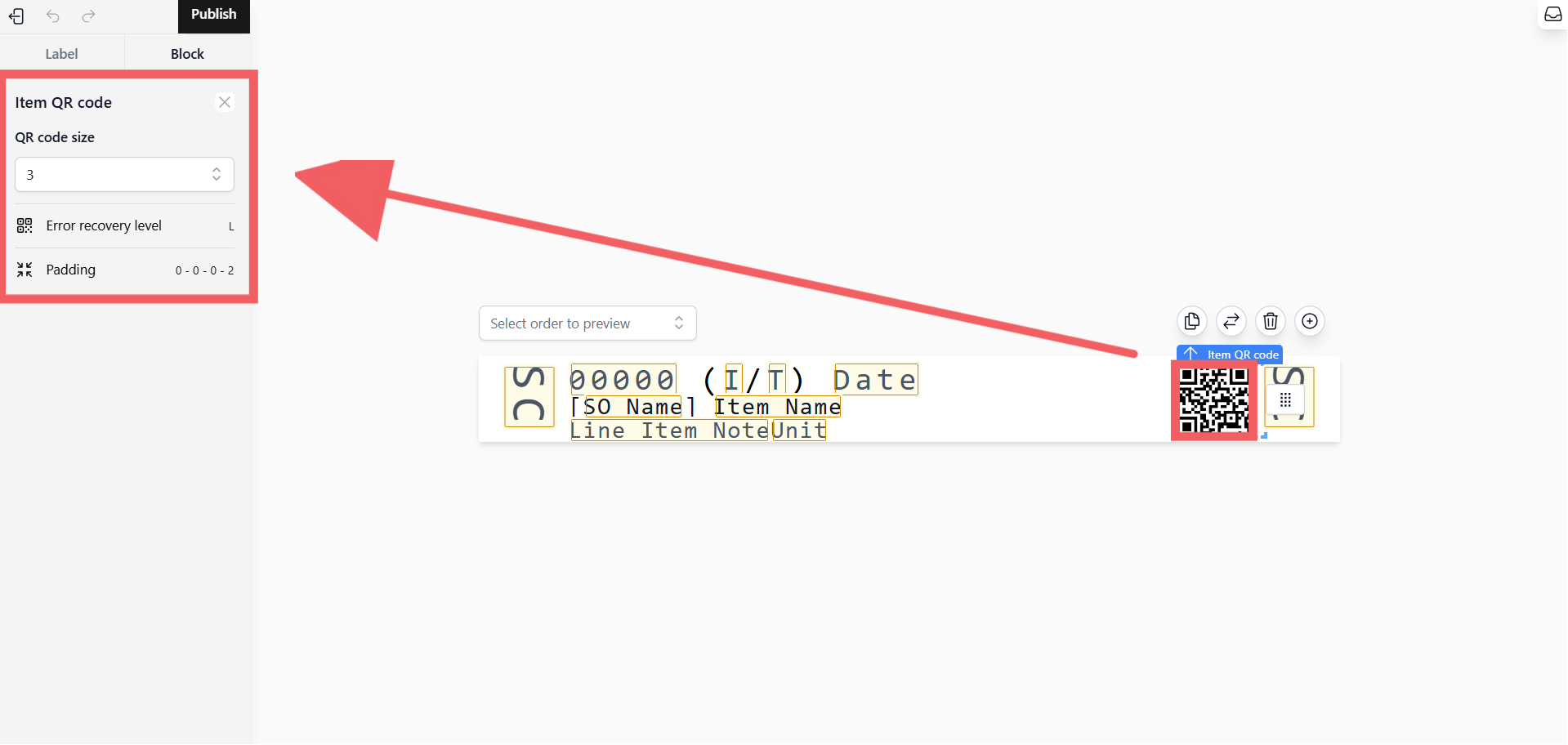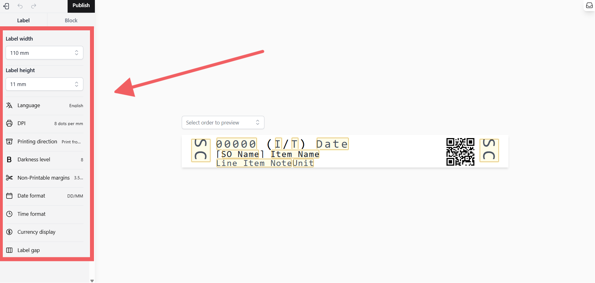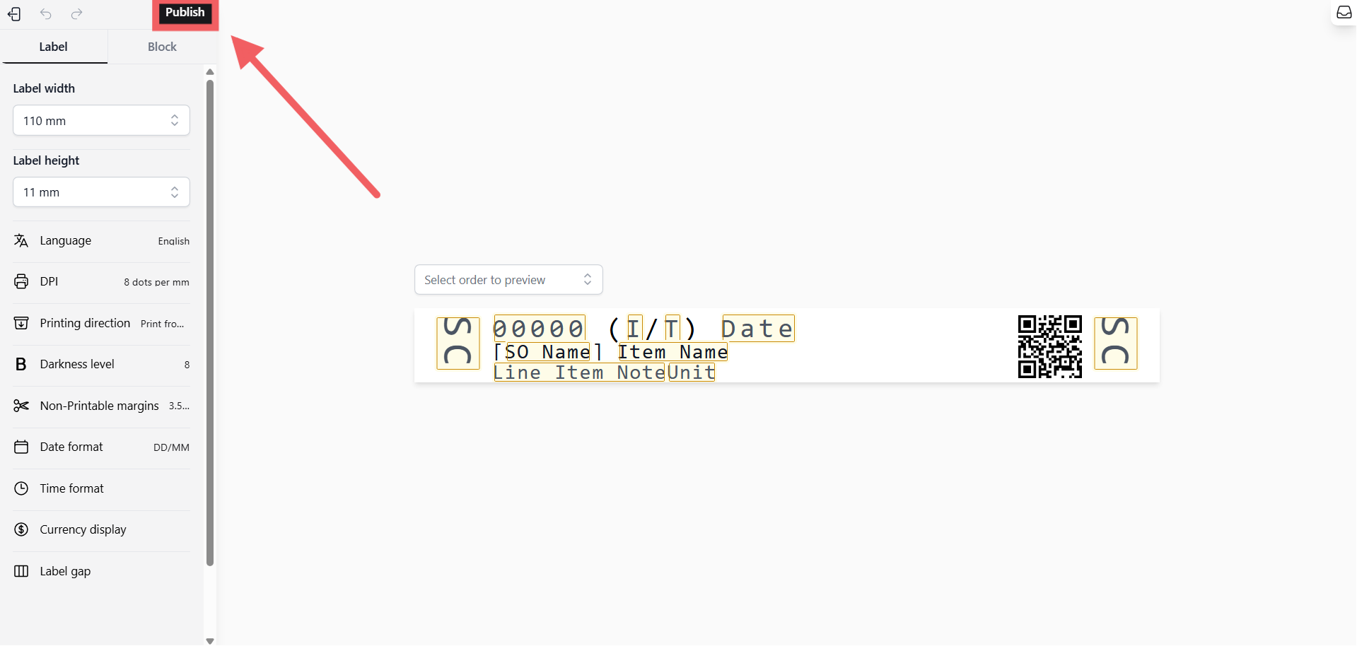 - Item Label: Select your newly published template (e.g., Multi-line item label tight). This is used to identify individual items in an order for tracking.