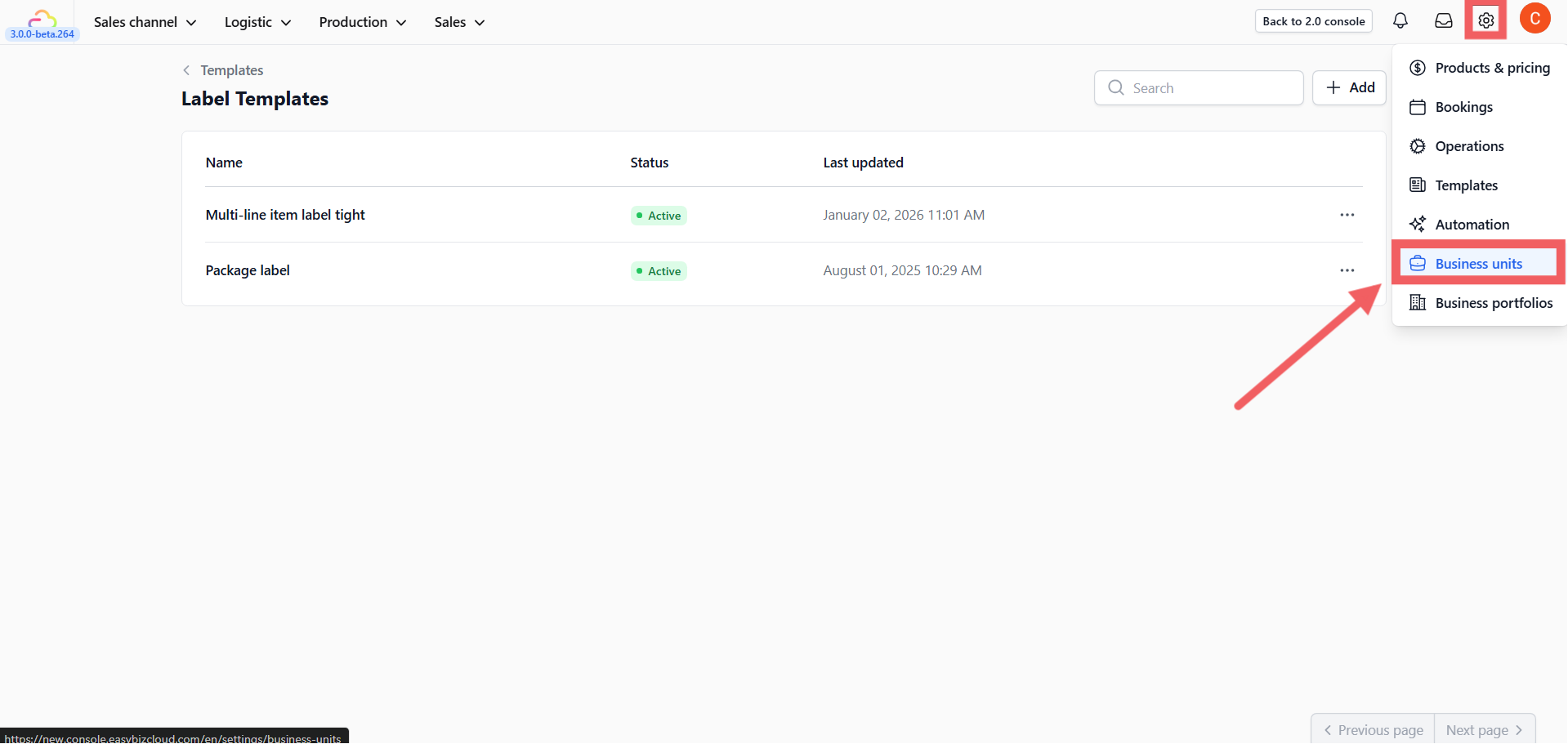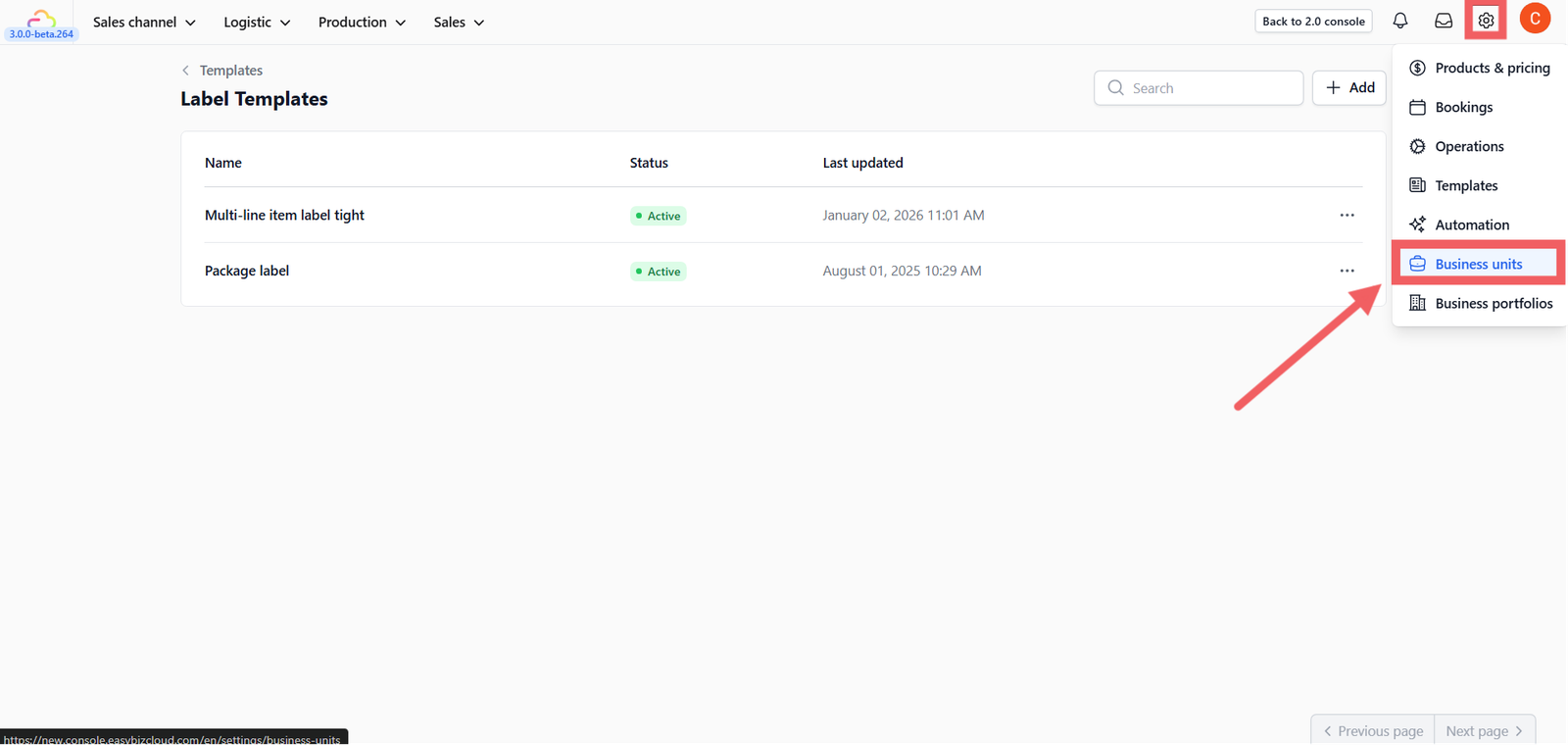 Go to Settings > Templates and select the Label card. By default, EasyBiz provides pre-made templates: