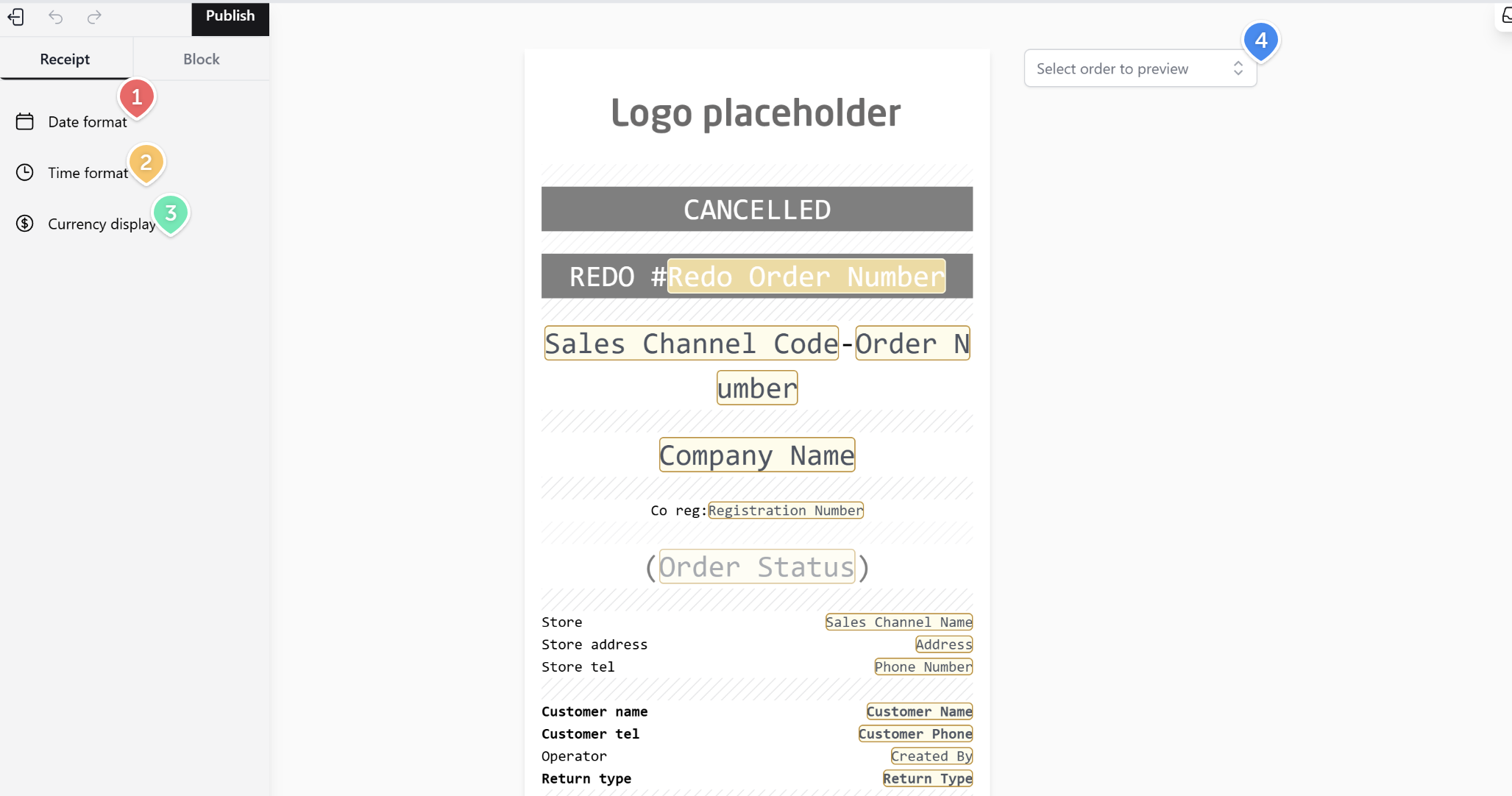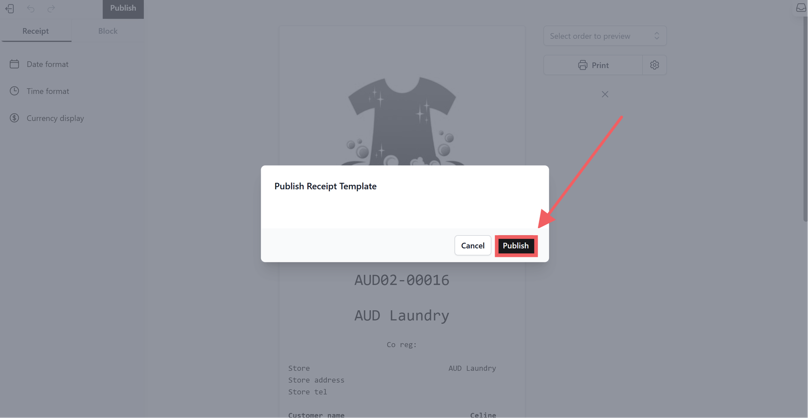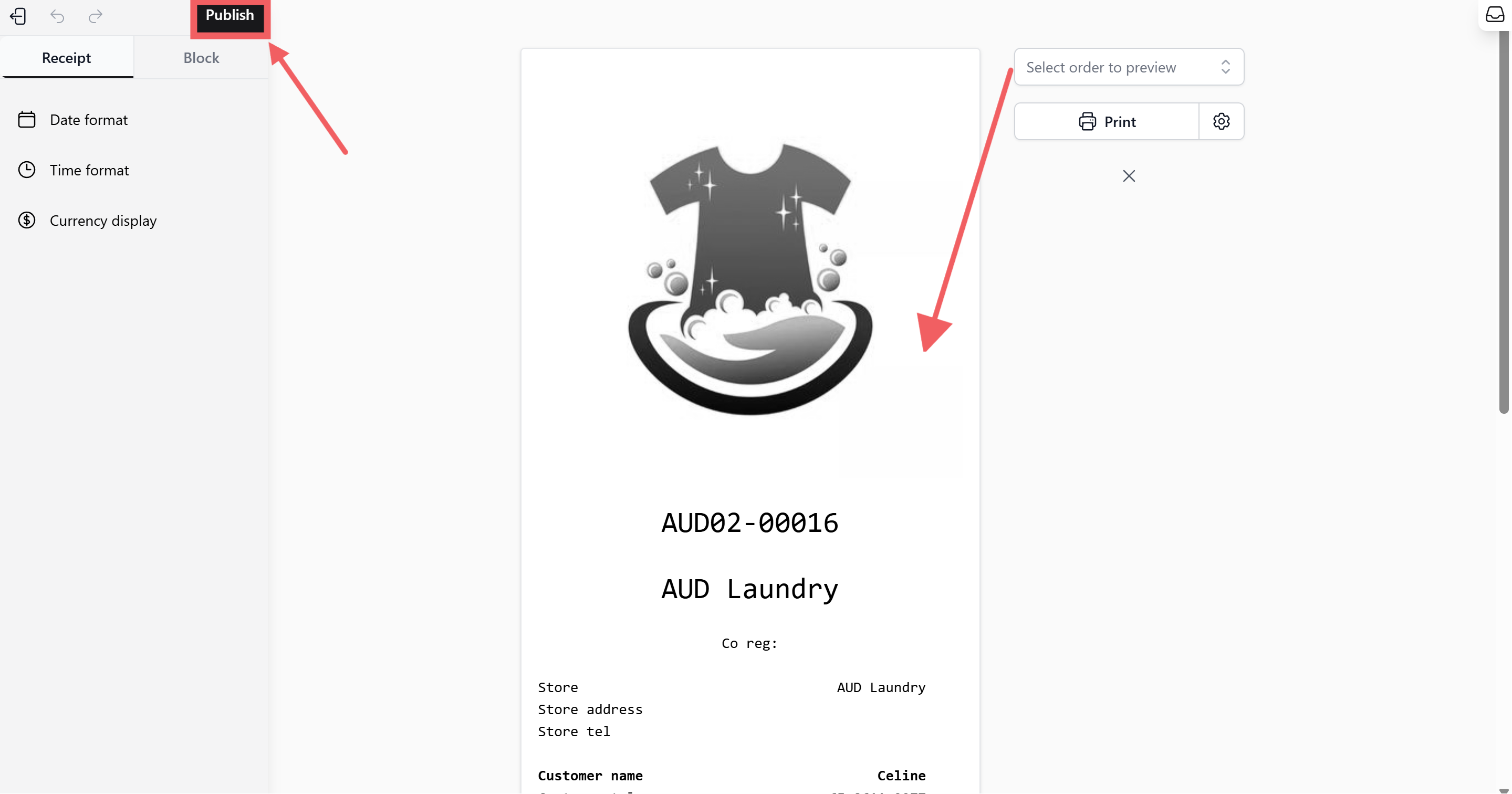 The system will generate a realistic preview, showing exactly how the receipt looks. When ready, click the Publish button to publish your draft version.