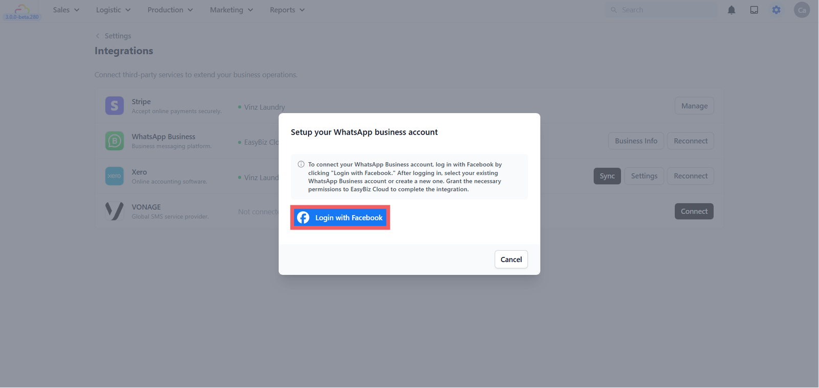Before your team can use the shared inbox or send automated messages, you need to link your WhatsApp Business account to EasyBiz. This is a one-time setup that takes just a few minutes.
