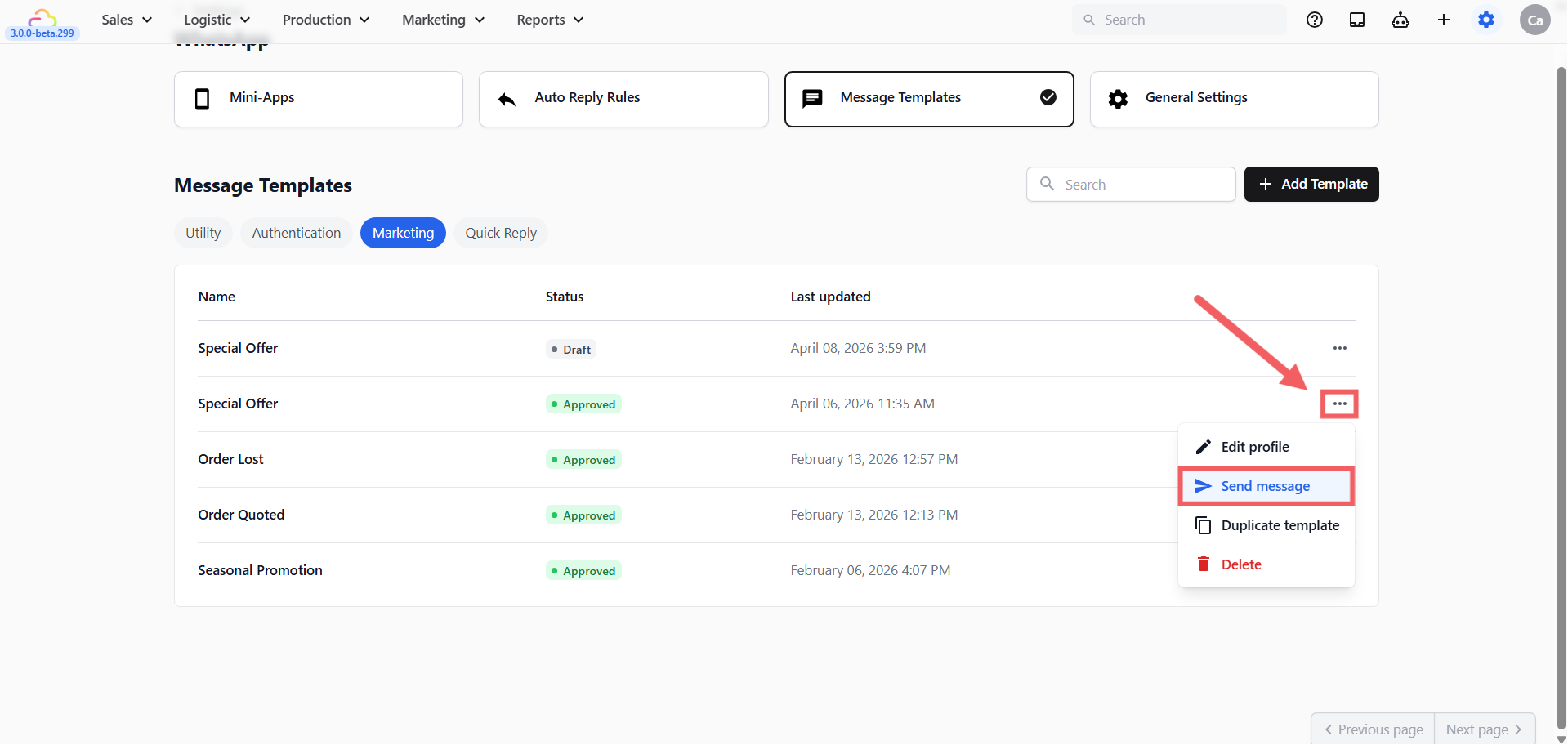 - Select your approved Marketing template