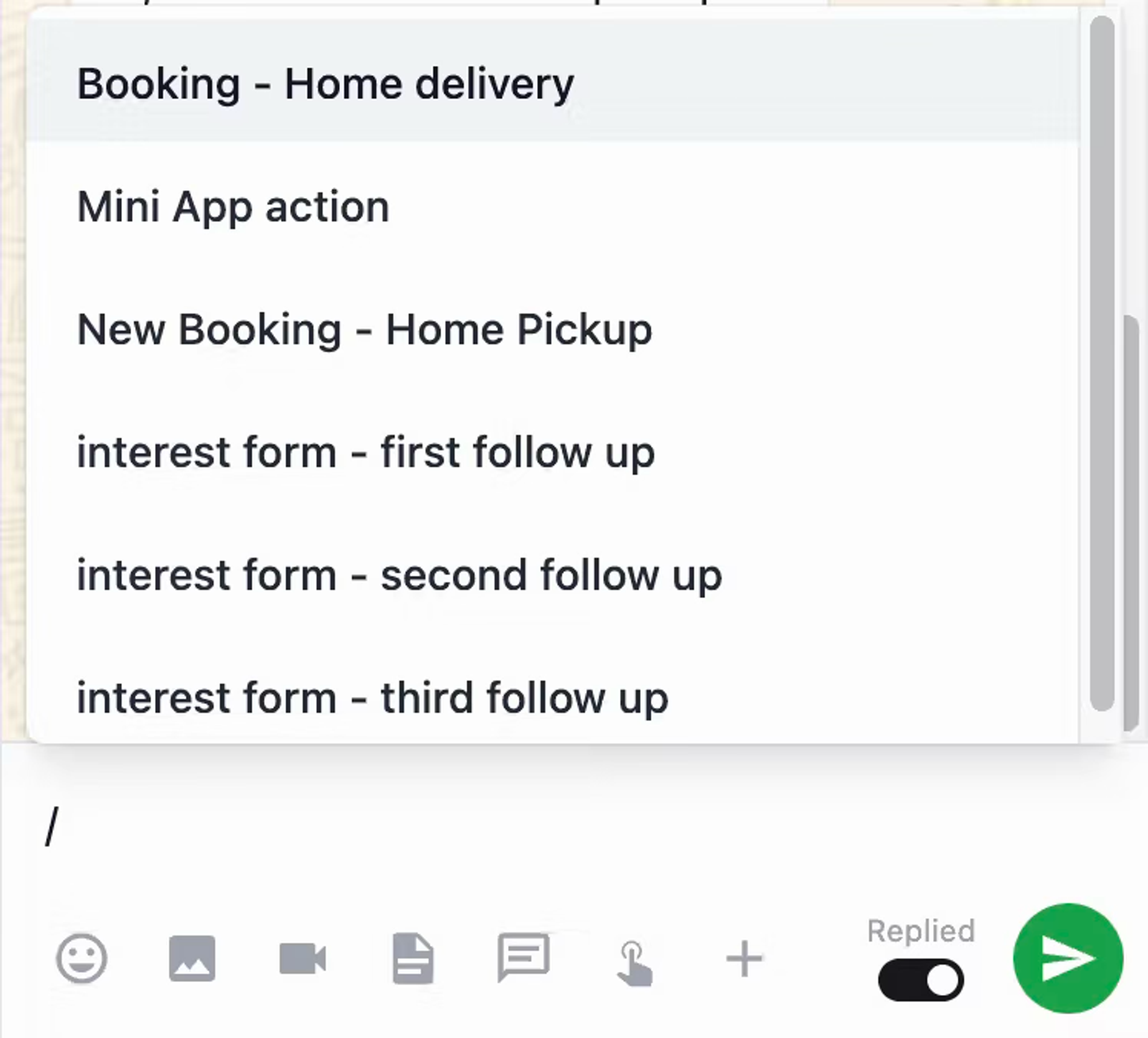 Quick Reply Templates now come with a new option: Mini App Action! Link a booking form to a template, save it, and send it to any customer with just a '/' and one tap.